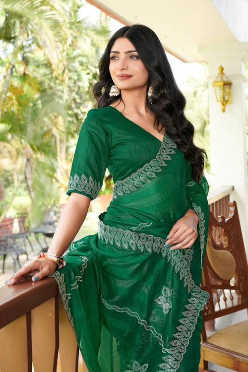 Floral Print, Geometric Print, Printed, Woven Bollywood Chiffon Saree (Green)